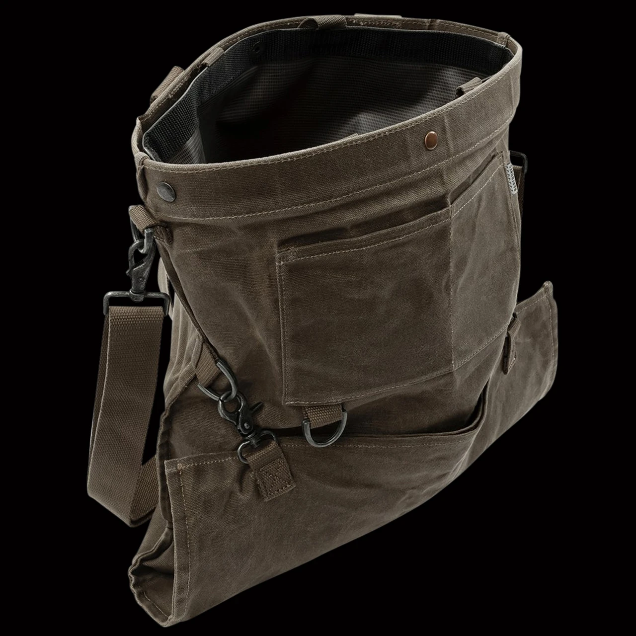 Inspired by vintage orchard design, and supremely useful around the camp, the Barebones Gathering Bag offers versatility in use, wearing, emptying and care. Its convertible straps allow for comfortable chest or back carrying, while its drop-out bottom makes quick work of emptying the harvest. Constructed of weather- and water-resistant paraffin waxed canvas and complete with a watertight removable liner, the Gathering Bag is the essential foraging and harvesting partner.