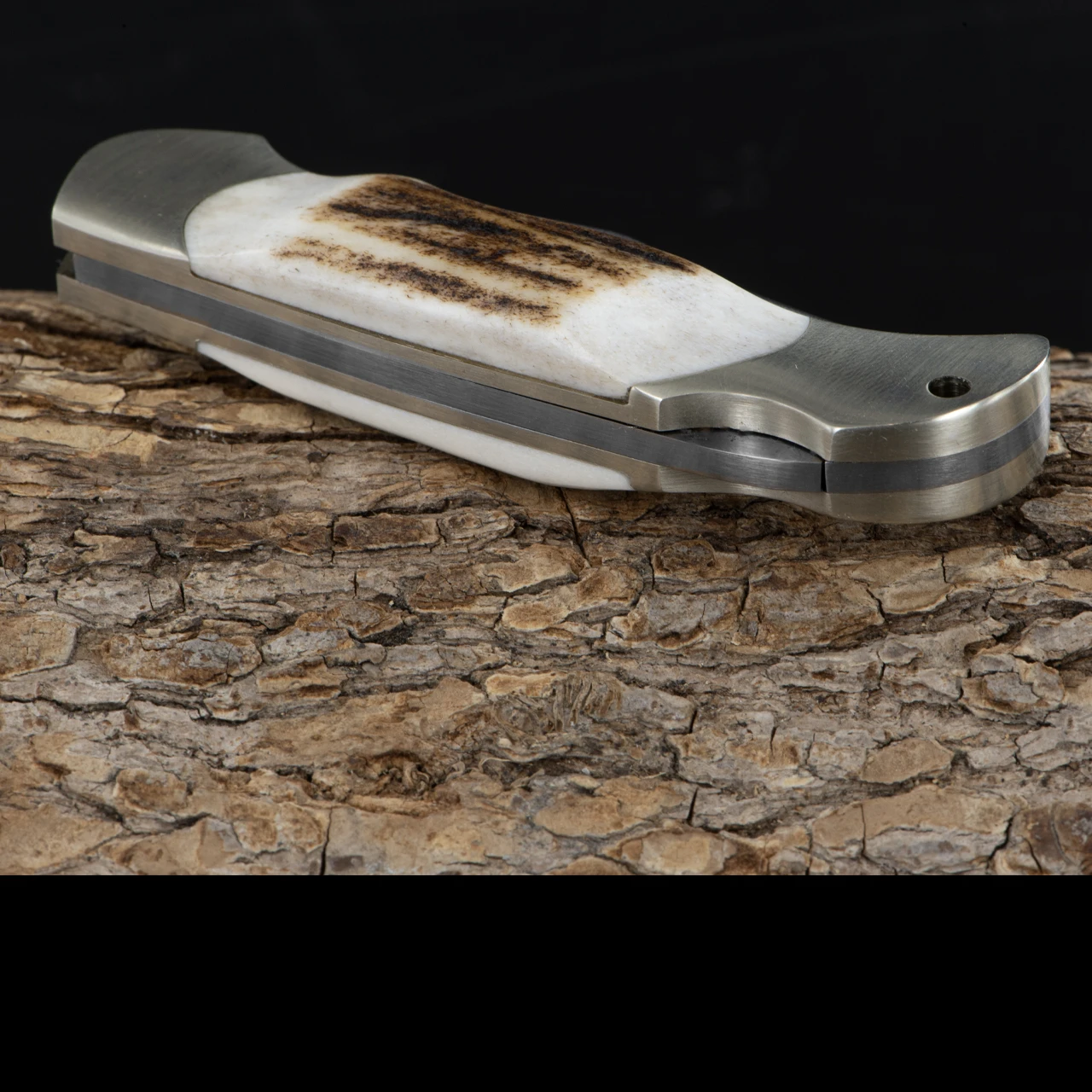 Boker used N690 as the blade steel, which has successfully employed in recent years on a wide range of knives. The silver-nickel scales are CNC-machined for greater precision. This version comes with Hirschhorn (Stag) handle scales.