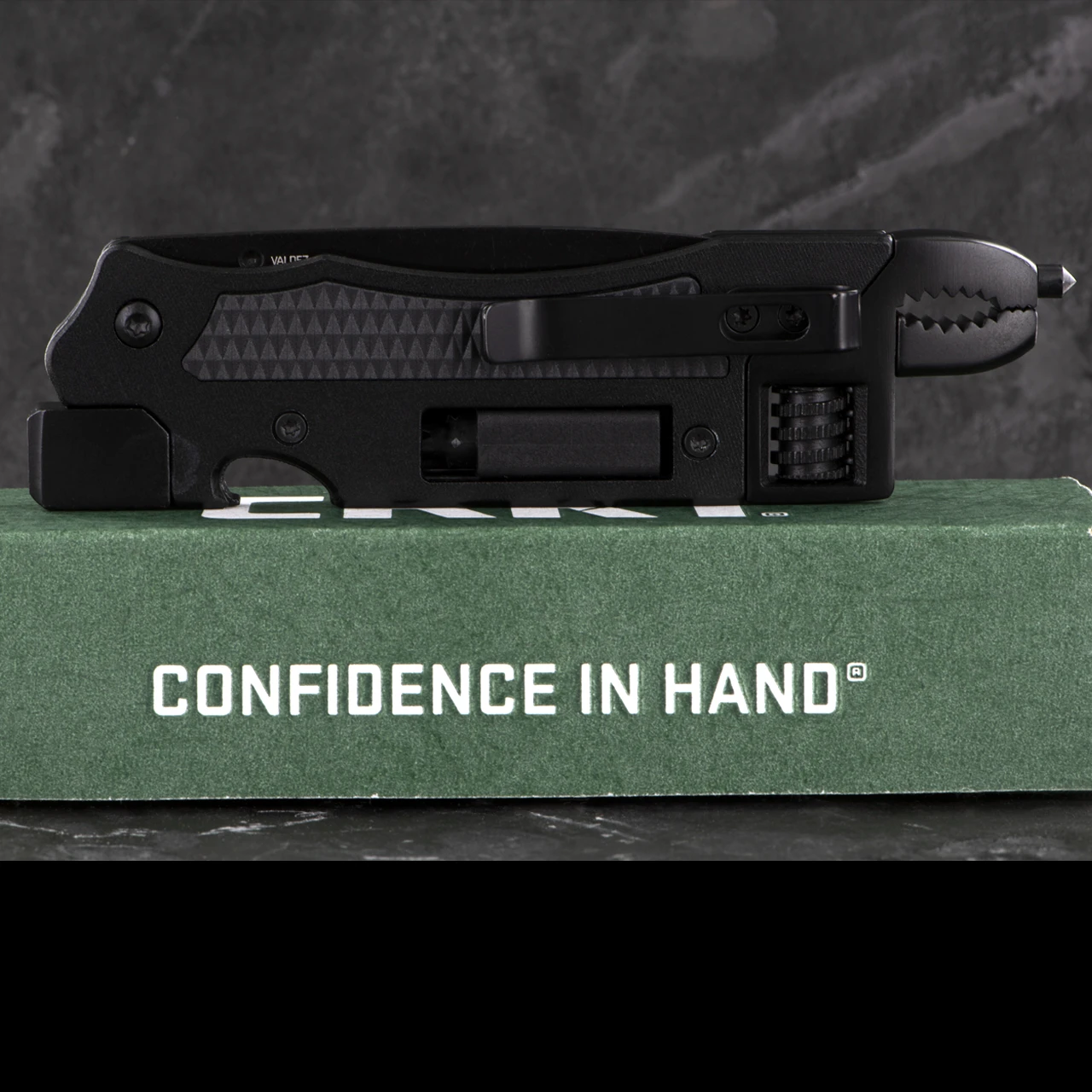 Born of Flames. Seriously. The CRKT Septimo Multi-Tool is a tactical to everyday carry crossover designed by a seasoned Green Beret to be more than a convenience—he forged it of experience to serve as a lifeline. A tanto blade with one Veff Serration for exceptional strap cutting ability, pairs with a Philips and flathead screwdriver, bottle opener, glass breaker, and adjustable wrench to create this deployment-prepared powerhouse.