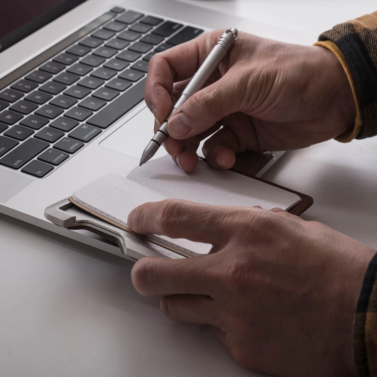 The Dango D01 Dapper Pen Wallet comes equipped with a high capacity four pocket bifold exterior (holds up to four cards per pocket) with one pocket dedicated for a pen. The anodized aluminium chassis and the pockets are held together by mil-spec stainless steel bolts. The D01 Pen Wallet retains a slim & sleek profile while holding its maximum capacity. The Dapper Pen Wallet is elegant and sophisticated but has an industrial edge which sets it apart from other slim wallet designs. Never be without a pen & pad, as ideas and information can get swept away real quick.