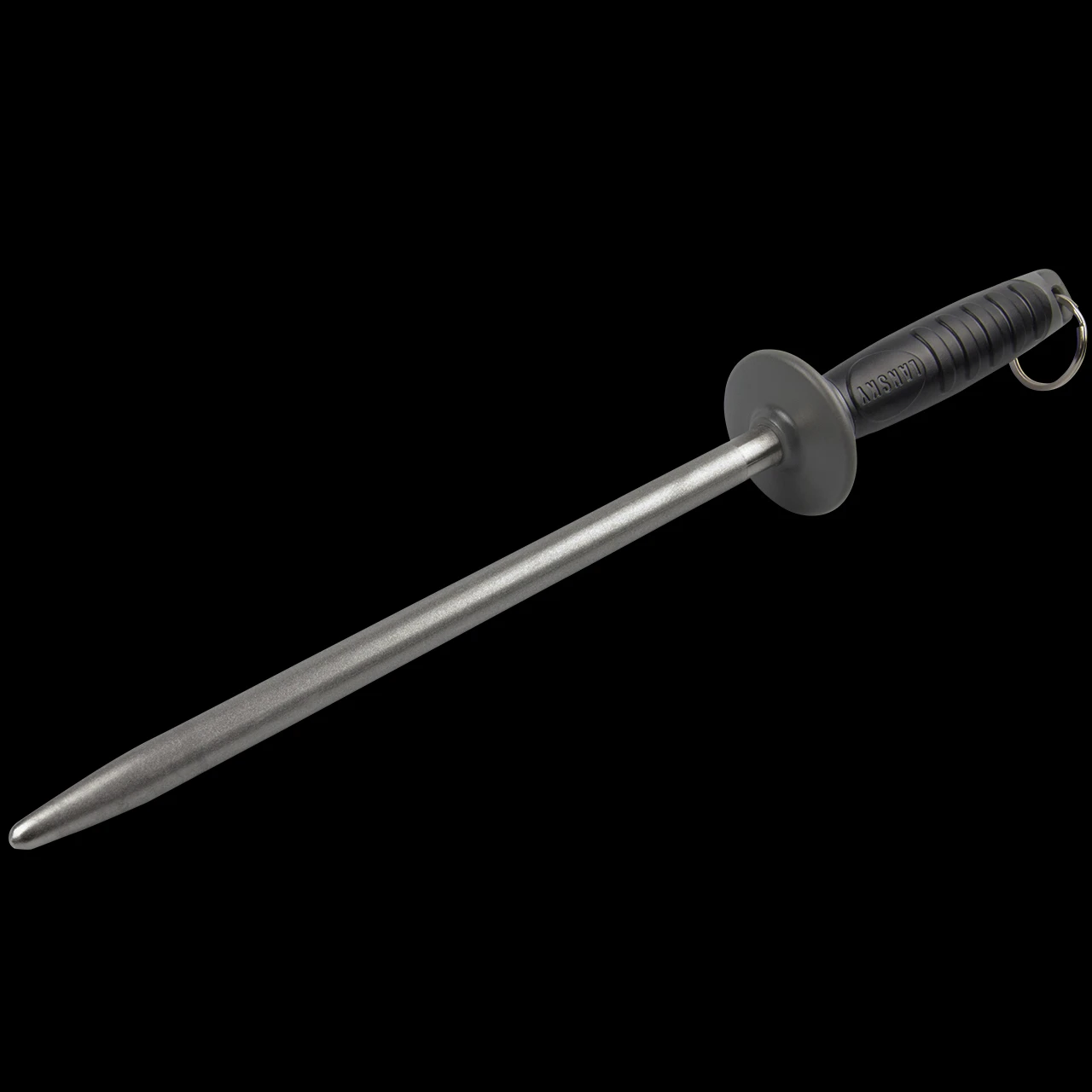 The Lansky Diamond Sharpening Steel features a hand guard and an overmoulded rubber, non-slip, comfort-grip handle. The diamond grit makes proper maintenance of your finest kitchen and carving knives faster and more efficient than ever before. Just a few strokes are all you need to put a factory-like edge back on your knives.