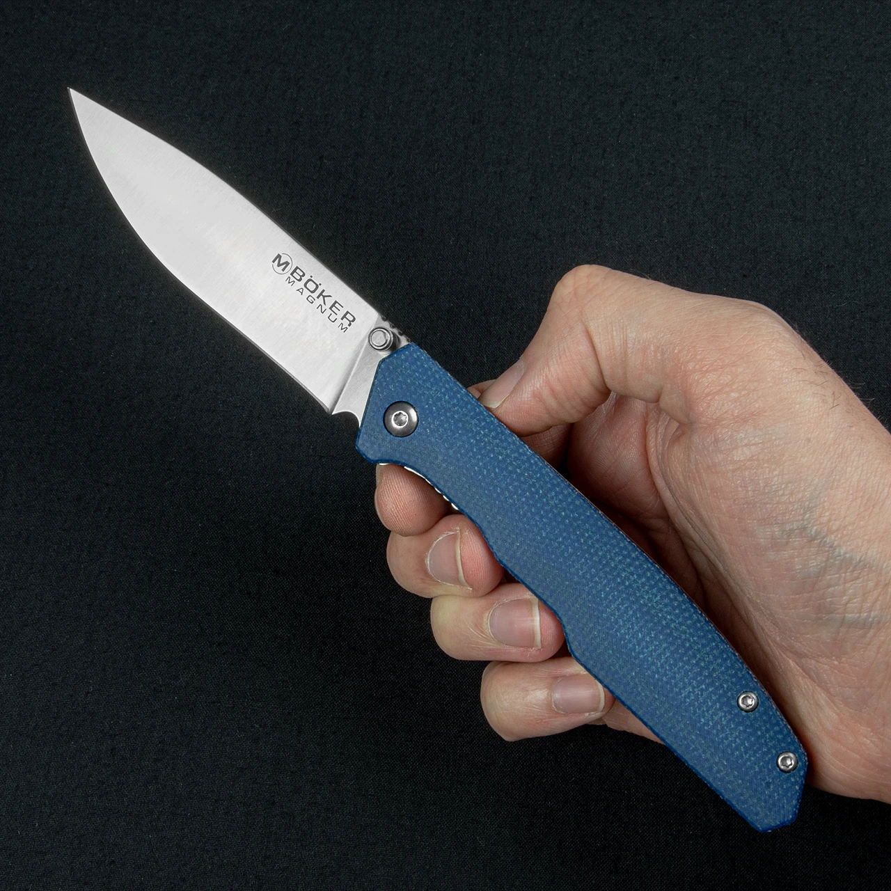 The Magnum Deep Blue Canvas neatly encapsulates all that is the best of Magnum, superb quality at a very reasonable price. For this price, you get a very solid blade made from 440A stainless steel with ambidextrous thumb studs. It locks firmly into place with a precision linerlock making it a great candidate for your working day.