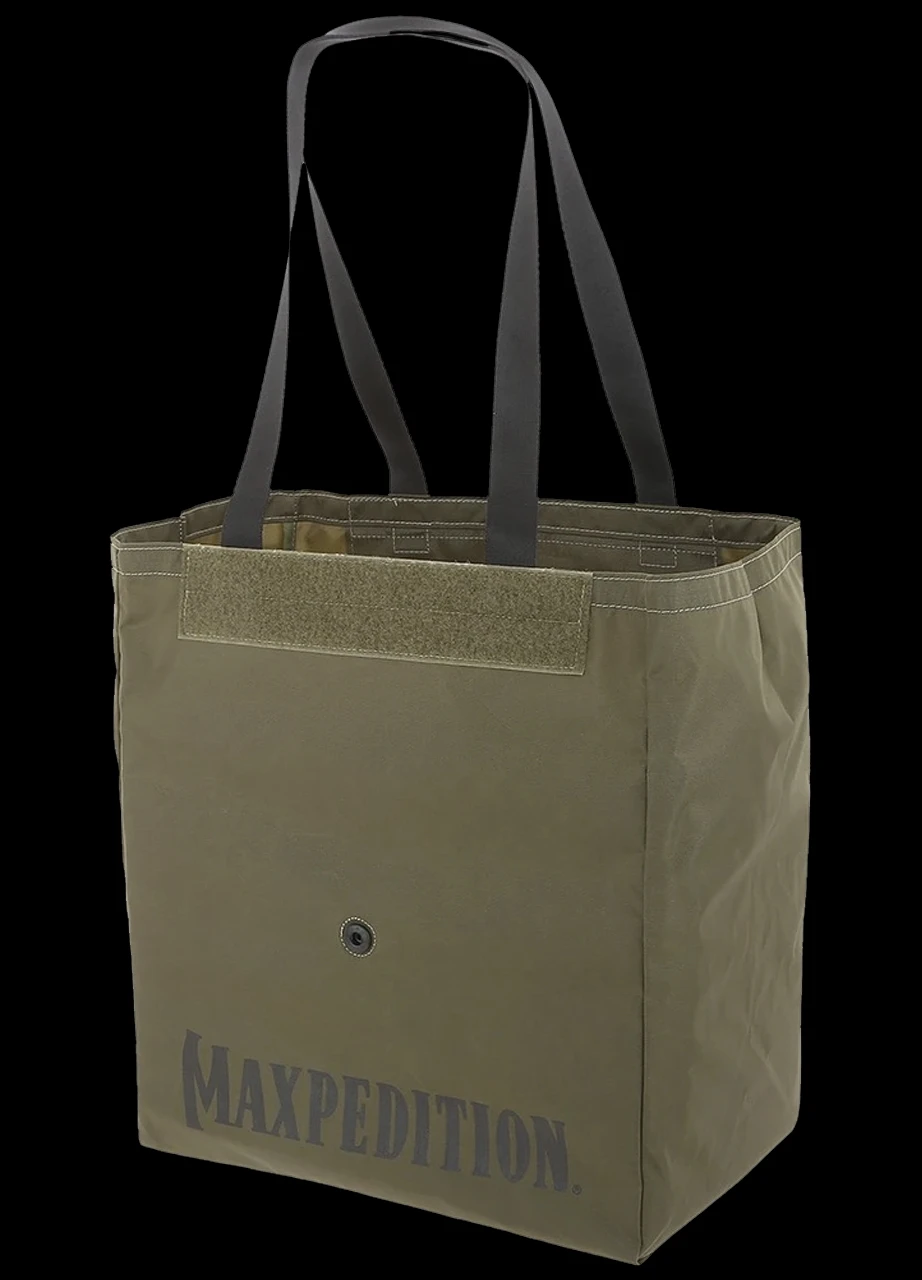 The Maxpedition Roll-Up tote is 15% larger than typical paper grocery bags. Great for grocery store shopping or traveling. You can roll up & fasten for easy storage. The unique bottom integral to front & back design ensures maximum strength and no joints to fail to secure the items you carry. This reusable roll-up tote bag can be your grocery-bag-for-life that you can reuse many times. It is a great alternative to single-use paper or plastic bags.