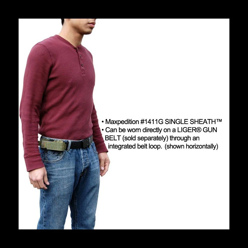 Maxpedition’s durable single sheath can hold an extra flashlight, small cellular phone, multitool or folding knife. It can also be attached to your backpack as an accessory or be carried on the belt upright or sideways. The length of sheath lids (both Single Sheath and Double Sheath) are adjustable with internal Velcro attachments for longer items or are completely removable for those who want the quickest access.