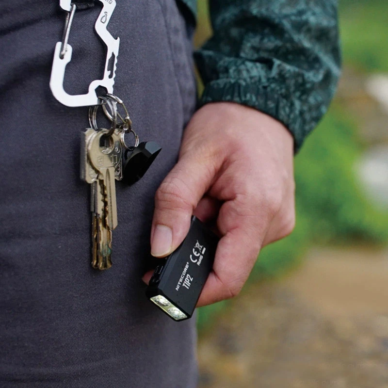 The keyring torch has a magnetic tail cap which can be separated from the body of the light for quick detachment. Featuring two neodymium magnets, the TIP 2 can withstand up to 2.5kg of weight. Additionally, the magnetic tail cap can be used to attach the flaslight to ferromegnetic materials such as when tinkering on cars, camping or using in an industrial space.