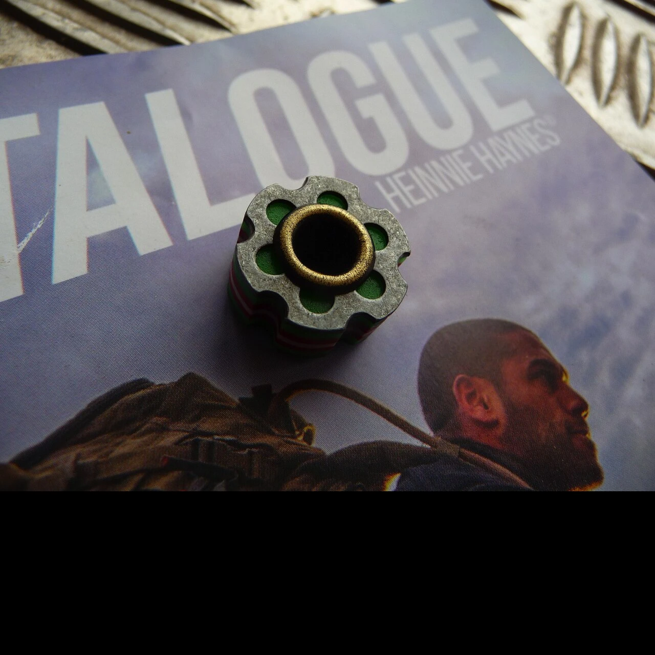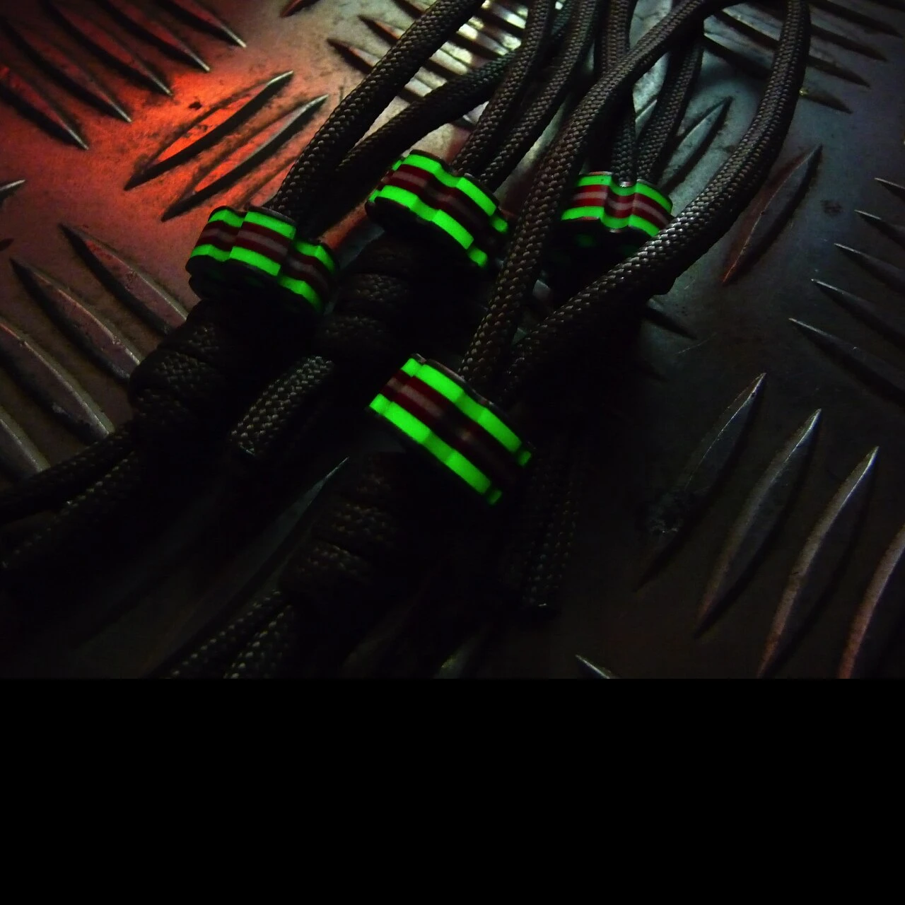 Give your knife a treat or your flashlight or anything you wish with this exclusive Heinnie® edition Ru Titley paracord bead. In the light it shows off its handsome green, red and white liners with antiqued stainless outers and in the dark it glows green so you will always find your favourite EDC item. Includes a grey mil-spec 550 true paracord lanyard.