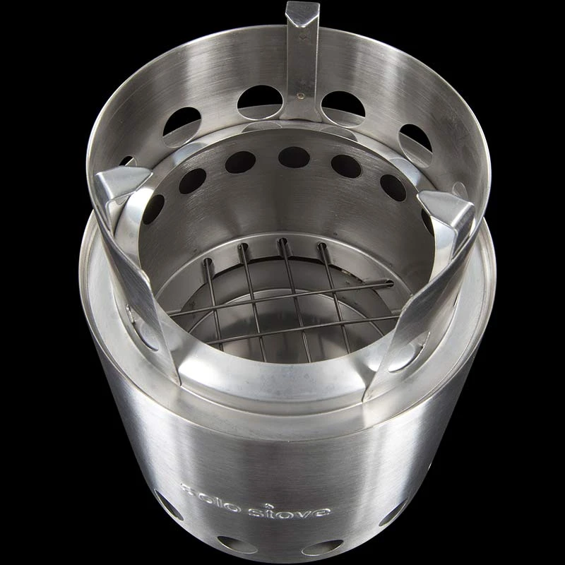 Designed with a double wall, the Solo Stove Campfire is a natural convection inverted downgas gasifer stove. The air intake holes on the bottom of the stove channels air to the bottom of the fire while at the same time, channels warm air up between the walls of the stove. This burst of preheated oxygen feeding back into the firebox through the smaller holes at the top of the stove causes a secondary combustion. This allows the fire to burn more complete which is why there is very little smoke during full burn. A more efficient burn also means you’ll use much less wood compared to an open camp fire. The Solo Stove Campfire doesn’t just burn wood. It actually cooks the smoke out of the wood and then burns the smoke not once, but twice!